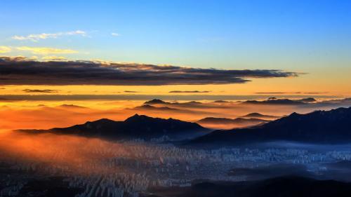 35、云海尘清,山河影满,桂冷吹香雪。 3. 相思似海深,旧事如天远。