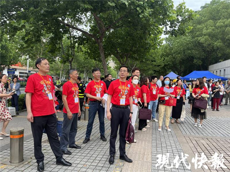 建邺区的所有考生都在中华中学考点参加考试。考点前,中华中学高三(10)班妈妈团为考生送考,胡妈妈说,早上还给孩子安排了 " 必胜餐 "," 希望孩子轻松上阵,正常发挥!"