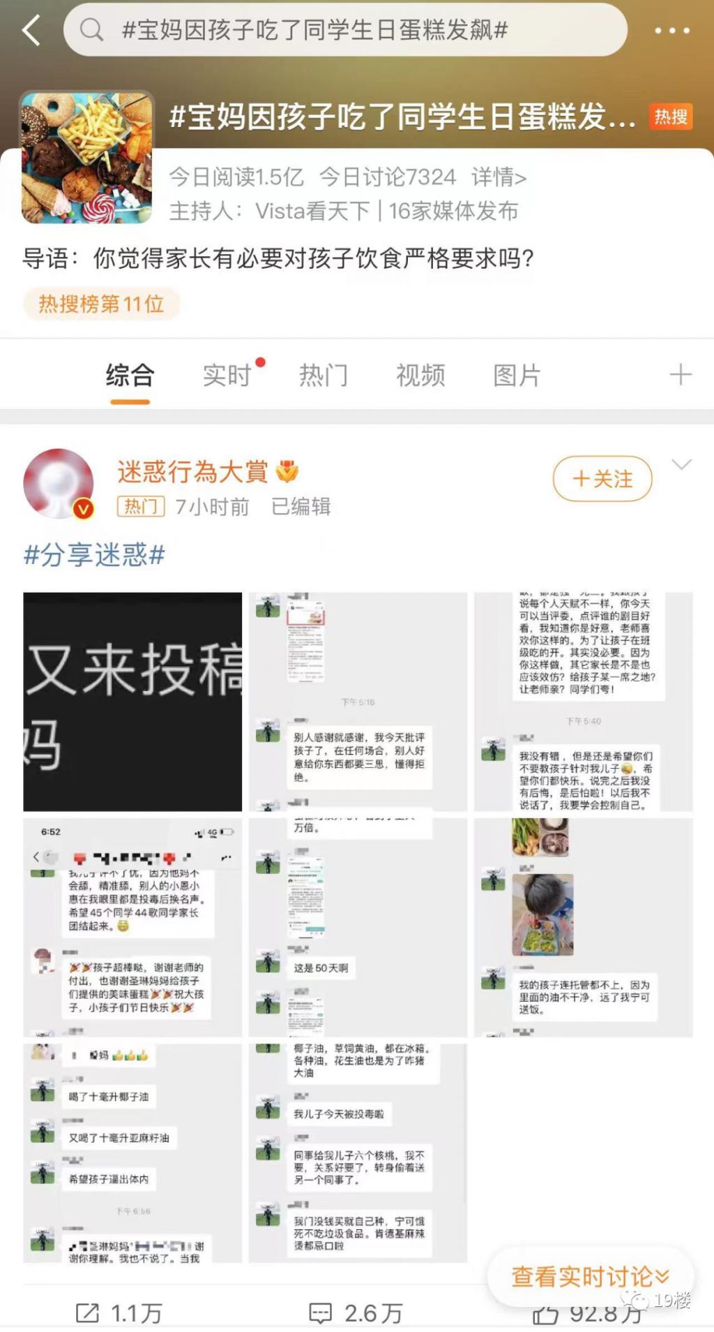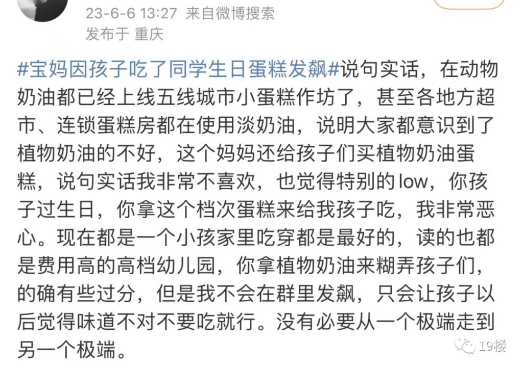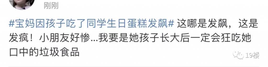 微博热搜上有一则话题挂了一个下午,引发网友热烈讨论—— # 宝妈因孩子吃了同学生日蛋糕发飙 #,今日阅读达到 1.5 亿,有 7000 多条相关讨论。