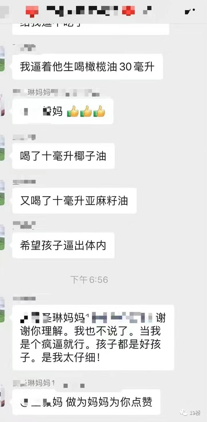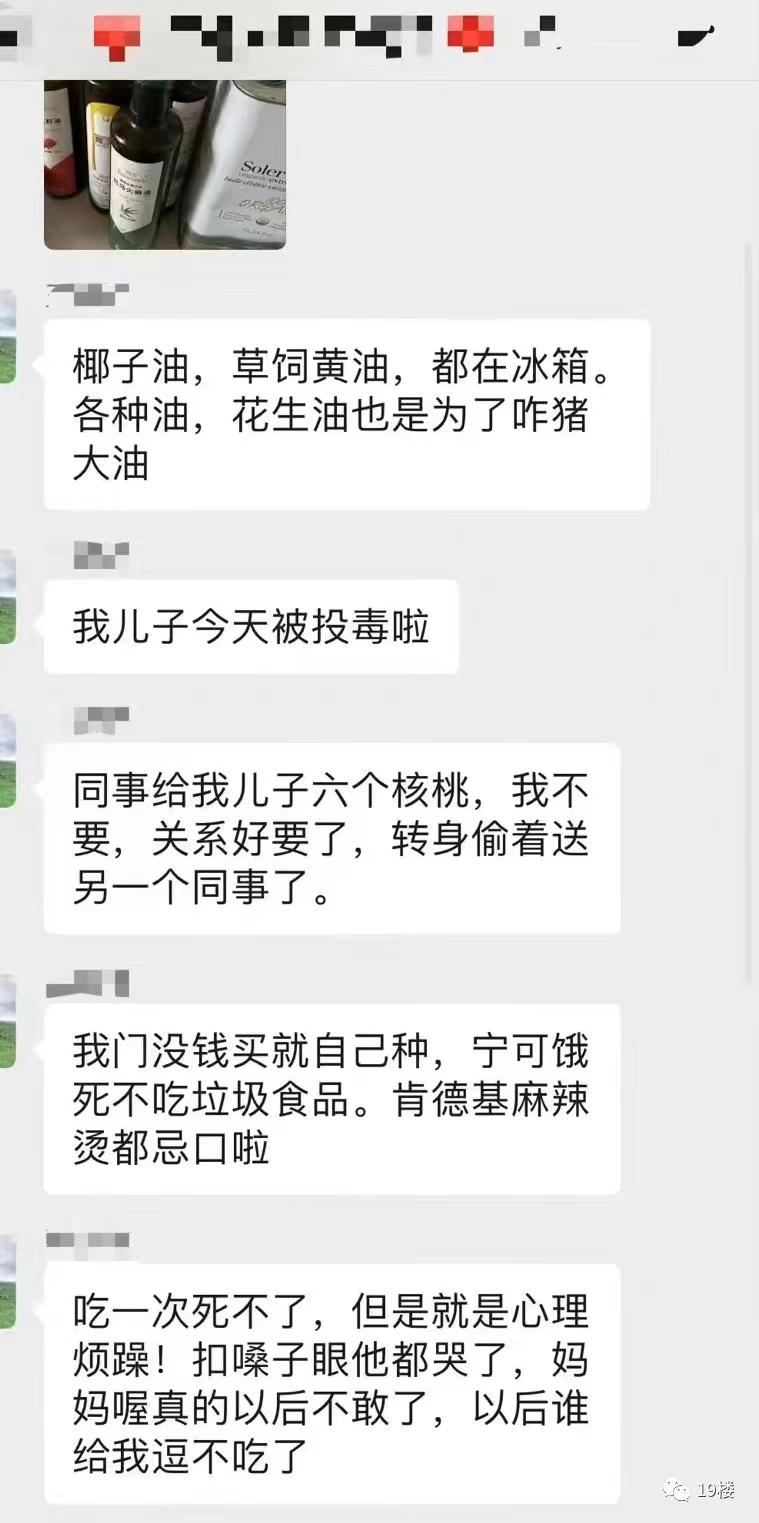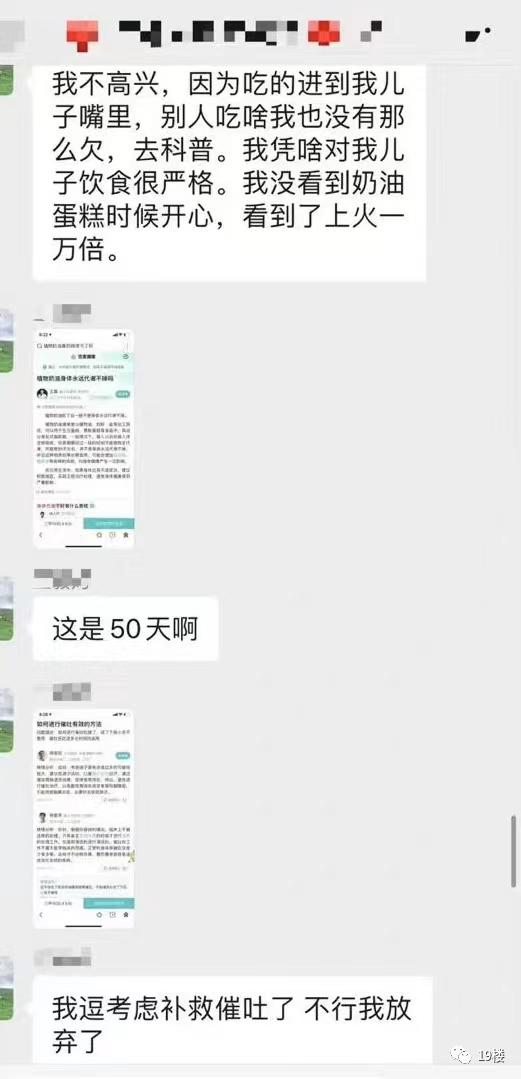 这位疑似孩子妈妈的家长在群里表示,自己平时就很注重孩子的饮食,偶尔吃蛋糕也只选择动物奶油的蛋糕,含有反式脂肪酸的零食更是碰也不碰。担心托管的饭菜用油不够好,哪怕再远也要自己送饭。所以孩子这次吃了同学分享的可能是植物奶油做成的蛋糕后,她觉得孩子仿佛被投毒,试图给孩子催吐,并且逼着他喝了橄榄油、椰子油和亚麻籽油,试图将蛋糕的毒逼出体外 ……