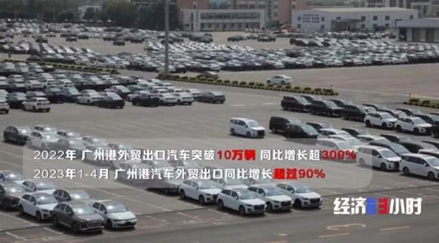 广州港也在忙碌地外运汽车。广州港南沙汽车口岸,是粤港澳大湾区规模最大的专业汽车滚装码头。2022 年,广州港外贸出口汽车突破 10 万辆,同比增长超 300%。今年 1-4 月广州港汽车外贸出口同比增长超过 90%。