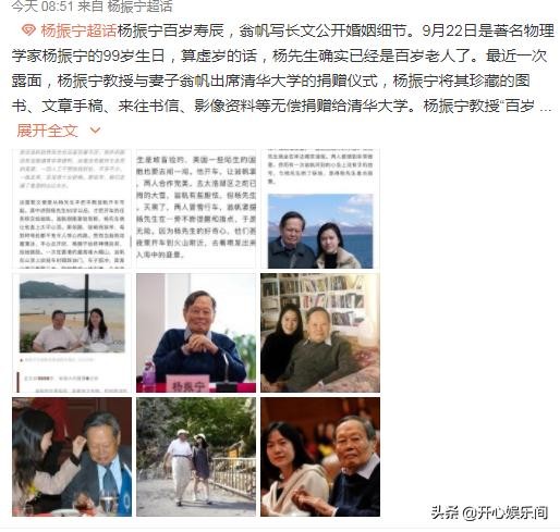 9月22日,著名物理学家,诺贝尔奖获得者杨振宁迎来了百岁寿辰。为迎接美好时光的到来,小52岁妻子翁帆写长文,公开他们之间的婚姻细节,引起大家关注。