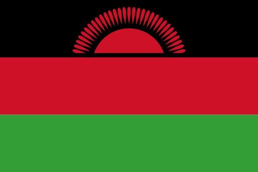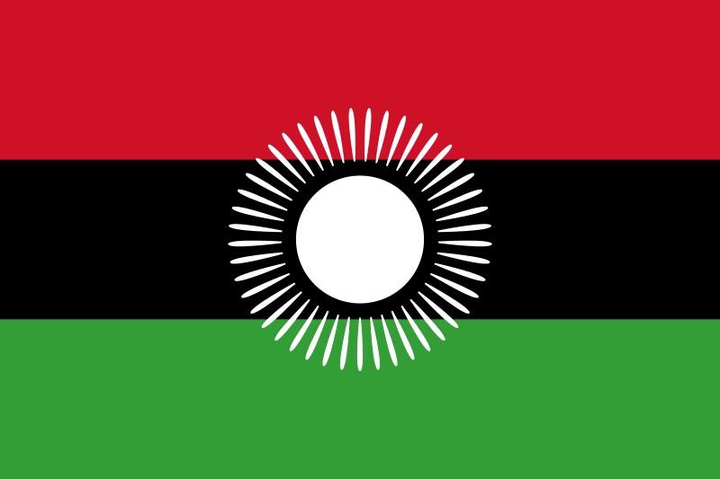 1964年,马拉维独立。国旗自上而下由黑、红、绿三个平行的横长方形构成,旗面上方中间为一轮冉冉升起的太阳,放射31道光芒。红色象征为争取自由独立而战斗的烈士鲜血,黑色象征非洲人,绿色代表该国的美丽国土和绿色大自然。