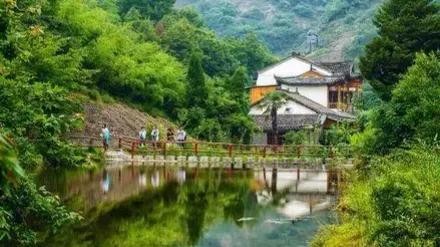 六安市大别山风情谷,林木苍翠,崖石壮丽,有神韭菜、古民居、地质奇观、悬崖泥棺、古代城墙、千年木桩等独特景观。