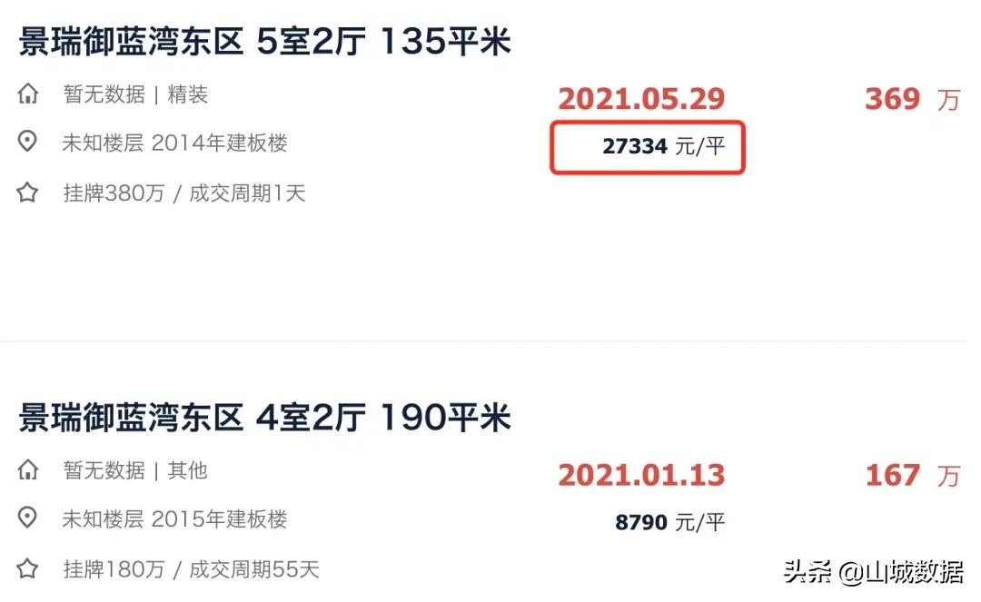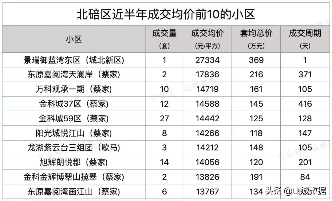 近半年成交均价前10的小区,景瑞御蓝湾东区(城北新区)在5月底成交了一套135平总价369万,建面单价达到 了27334元/平,可能是实际得房面积非常大。