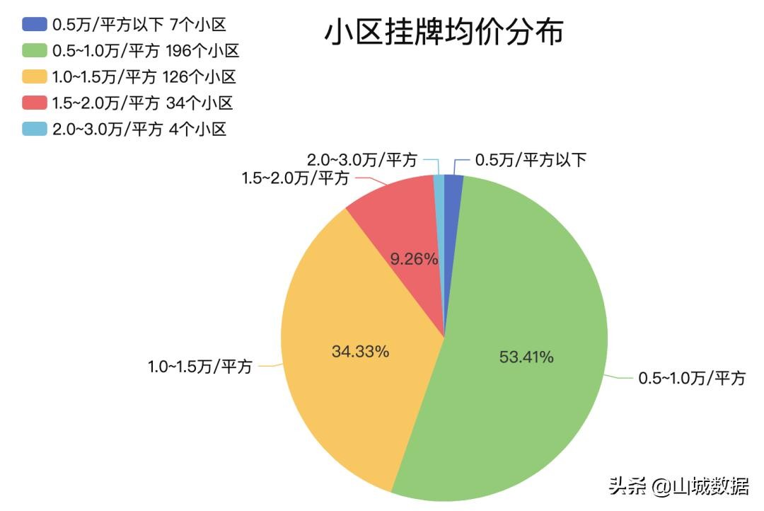 55%的小区挂牌均价低于1万/平方,34%的小区均价位于1万到1.5万/平方区间。