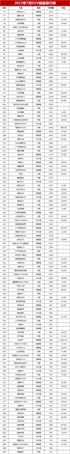 吉利银河L7表现不俗,上市第二个销量突破万辆大关,达到10058辆,排名第25位。