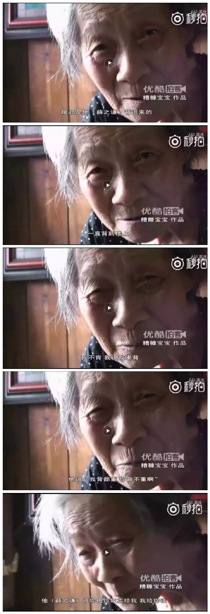 暖男薛之谦给老人叫了出租车,并且背了废品回家。