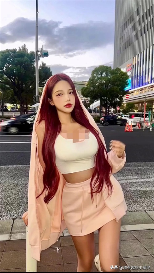 这张图片展示了一位年轻女子,她穿着一件粉色上衣和白色短裤,站在一条街道上。 她的长发披散在肩上,看起来非常时尚。 她正在摆姿势拍照,展示自己的美丽和自信。