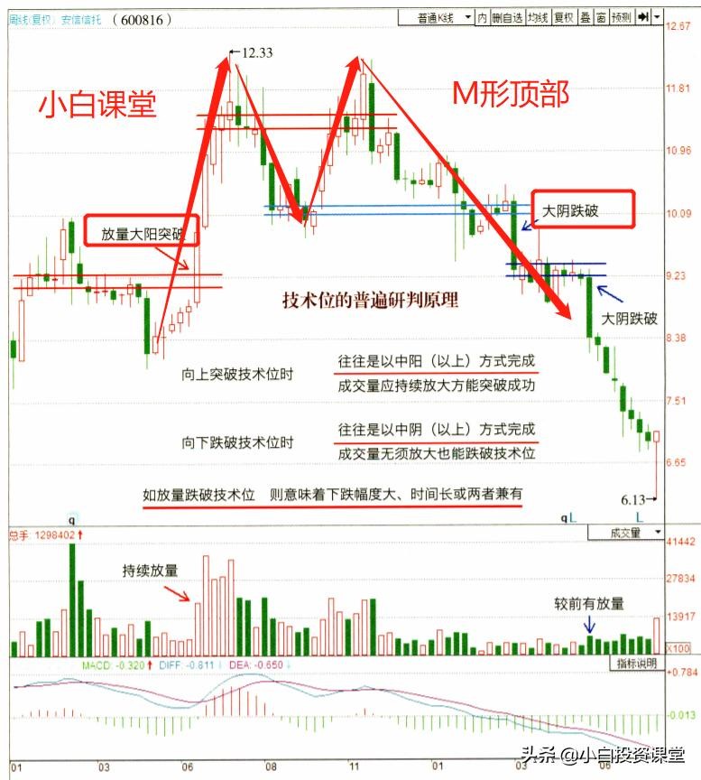 要突破技术位一般都是中阳线,中阴线,上涨突破多数要放量,下跌时不一定放量。