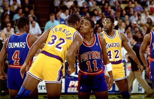但最重要的是,他是一个完美的四分卫,在场均助攻方面一直领先联盟。1983-84年至1985-86年,托马斯入选nba最佳阵容。他让兰比尔、特里卡、约翰·朗和维尼·约翰逊找到了稳定的得分机会,并展示了与任何人合作的能力。1984年和1986年,托马斯两次获得全明星MVP,分别贡献了15次和10次助攻。