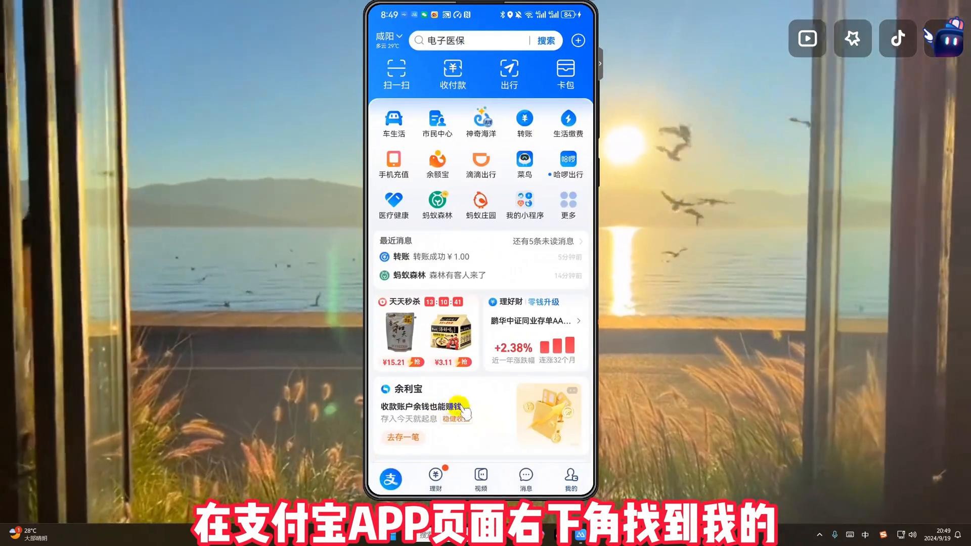 2. 在支付宝 APP 页面右下角找到我的,点击它。