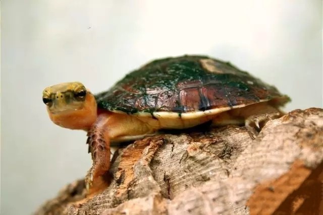 百色闭壳龟通体比较黄净,腹甲几乎整体黑色。饲养环境为通用半水环境,可以冬眠,食谱必须是比较杂。可喜的是人工条件下,产蛋量大增致每年6-7只