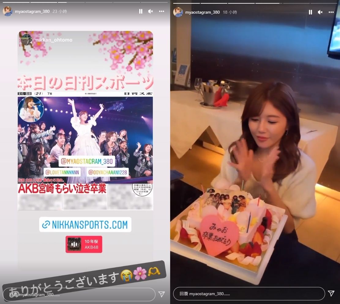 宫崎美穗从AKB48毕业了。(图/翻摄自Instagram/myaostagram_380)