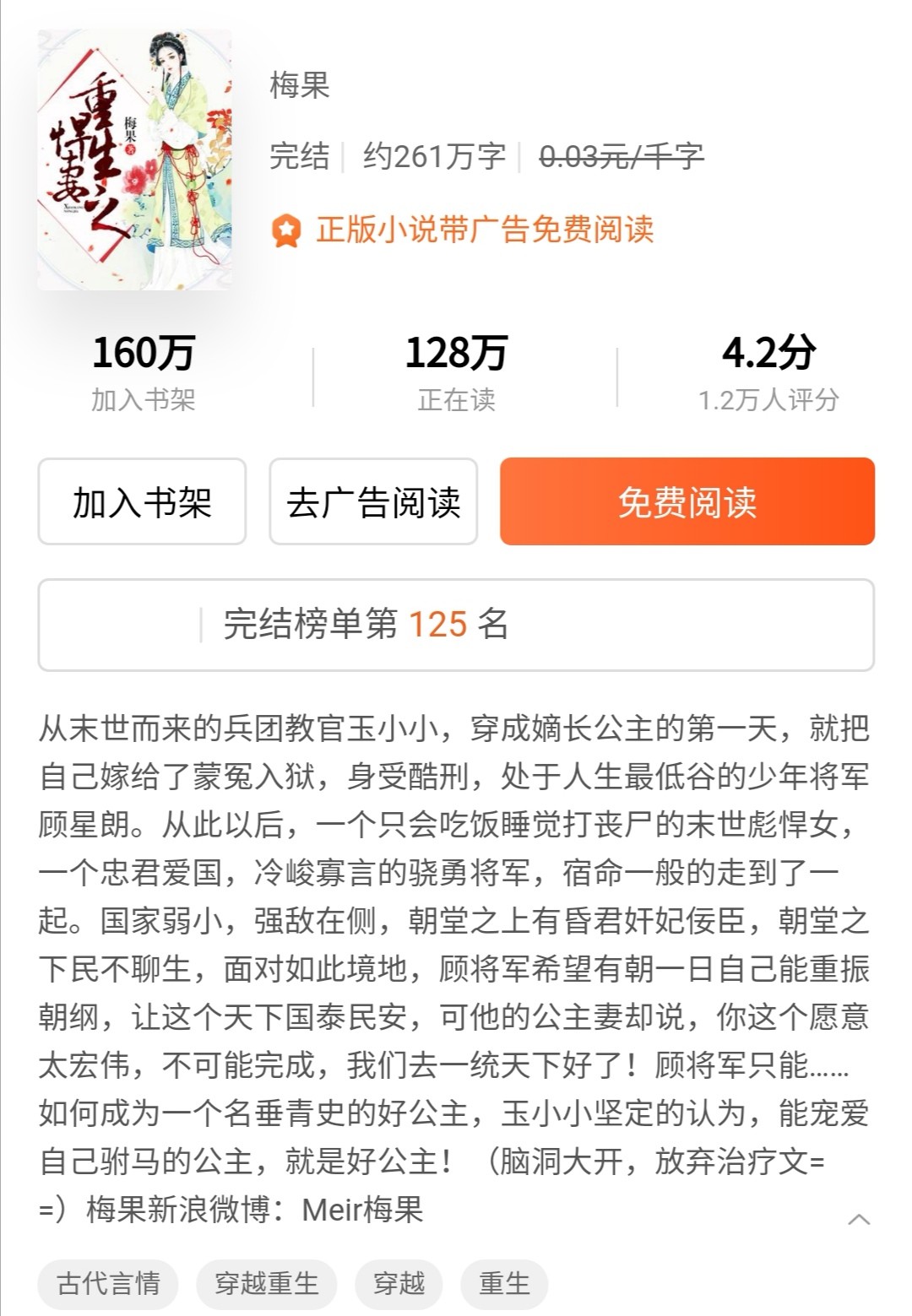 女主在末世是军官,穿到古代做公主,救了被冤枉的将军男主的故事。属于互宠文,感觉女主宠男主较多一点。