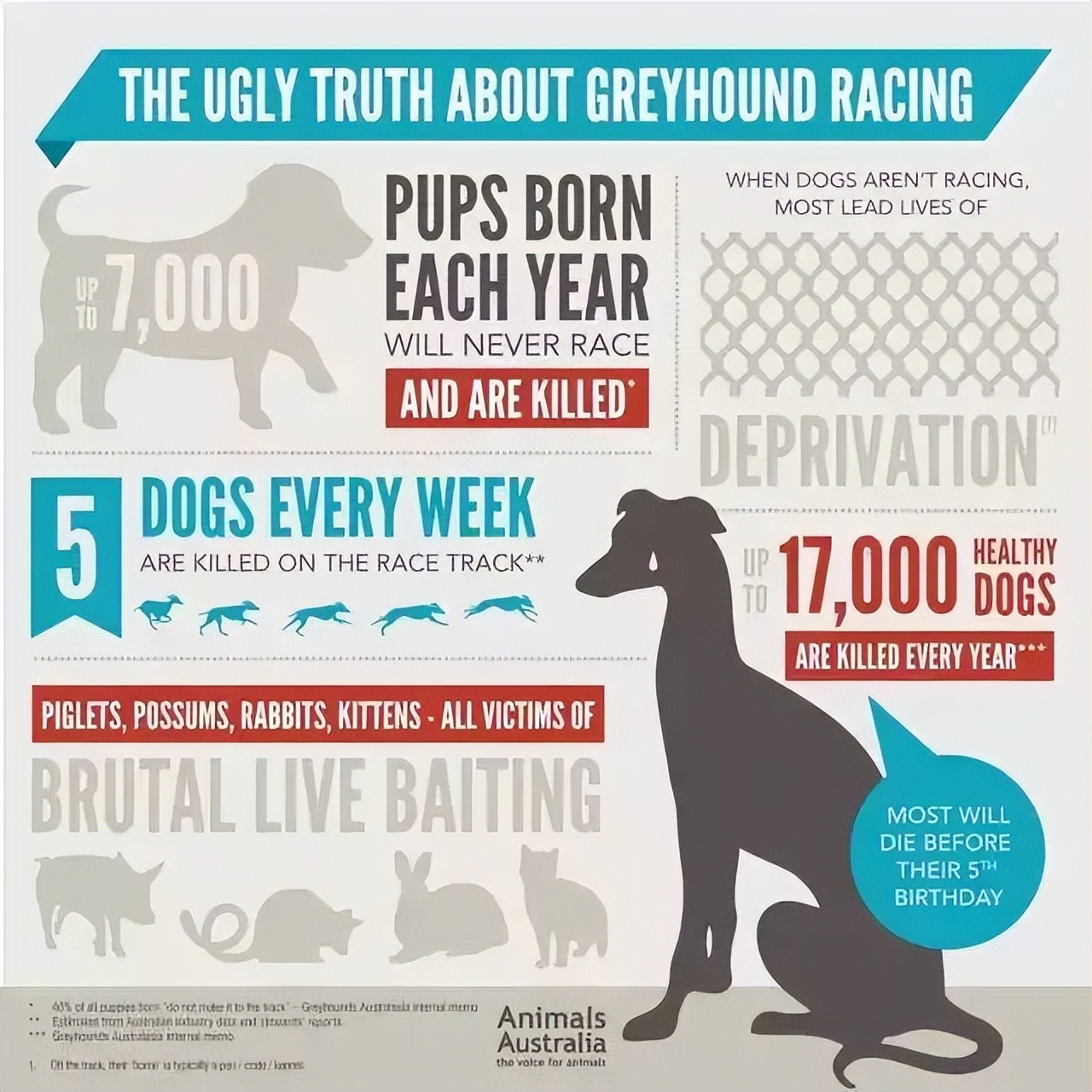 因为赛狗运动对待狗狗的残忍性,所以近几年澳大利亚已有不少地方取消了这项活动,导致大量灵缇犬一夜之间成为流浪狗。