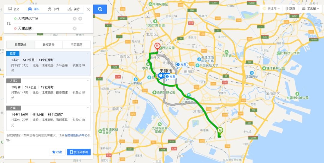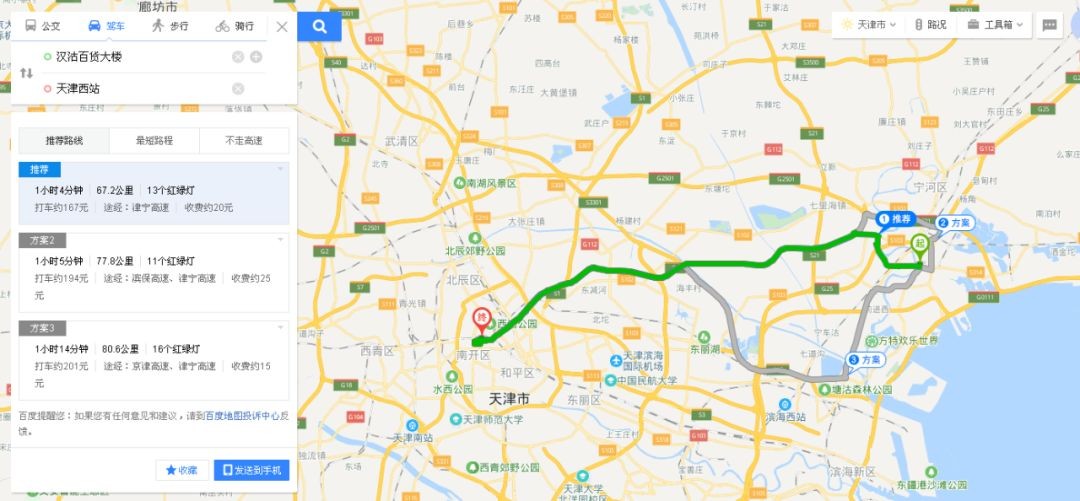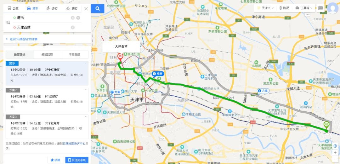 从咱滨海到天津西站的方法,也都给您计划好了。全部图片都可点击查看大图。