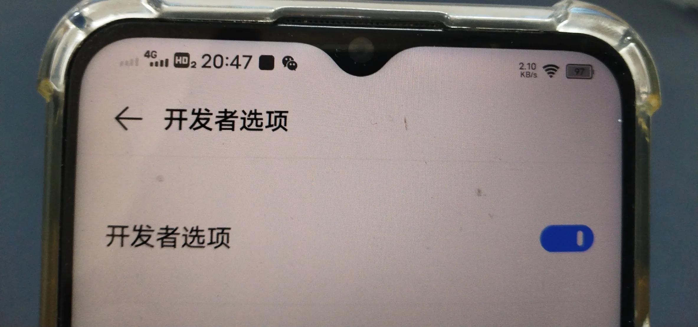 进入开发者选项后,一定要打开这个开关才能进行设置。(如上图所示)