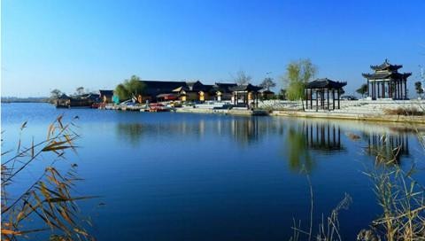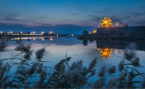 广府古城坐落在面积达4.6万亩的河北省三大洼淀之一的永年洼中央,围绕广府城墙四周是环绕5公里的护城河,洼淀陆面积平均海拔仅41米,比滏阳河底低两米,洼淀常年积水,且水质优良,芦苇茂盛,鱼虾共生,碧水风荷,雁戏鸟鸣的水乡景象,被人们赞誉为“北国小江南”。