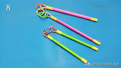 步骤8:我们把3个圆形把两根棍子连接起来,就是一个完美的双节棍了,制作方法非常简单我相信大家一定学会了吧。如果大家有什么疑问可以在评论区给作者留言,一般情况下都会回复。