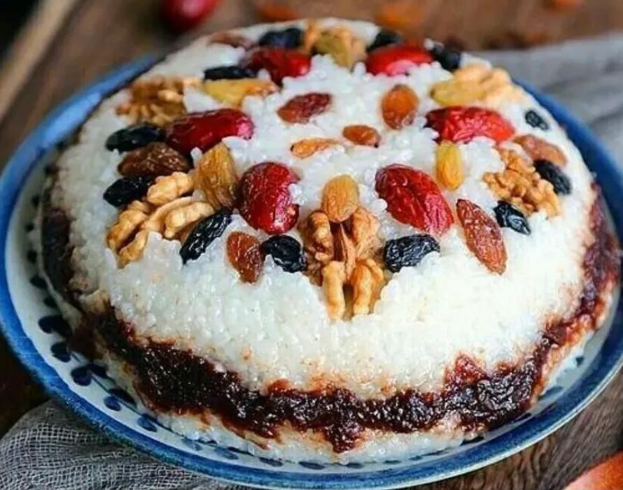(5)取出将蒸好的八宝粥倒扣到盘中即可,特别好吃香气四溢热乎乎的吃上一口香甜软糯让人无法抗拒,全家都喜欢吃!