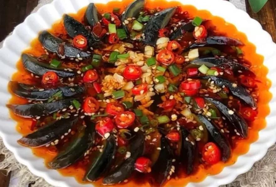 (3)锅中热油爆香蒜末淋在皮蛋上,撒上葱花和小米辣点缀就可以开吃了,好吃又好看,全家人都爱吃,过年必备菜品!