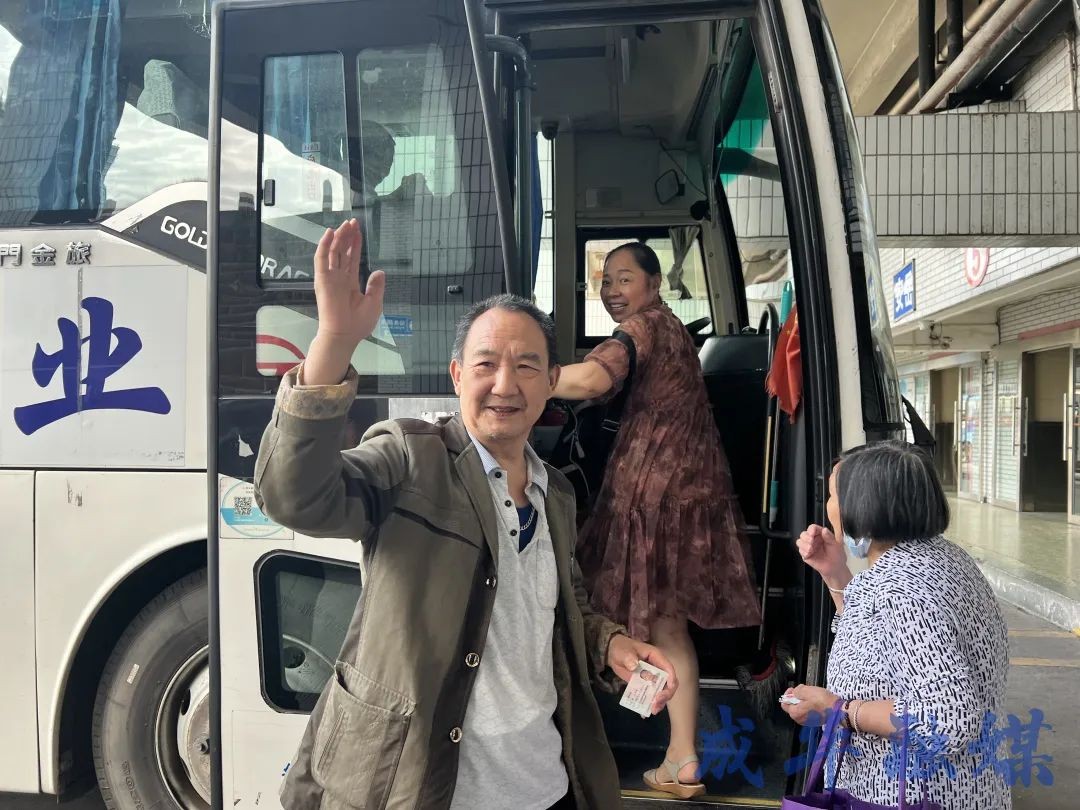 司机杨师傅一边招呼着旅客有序上车,