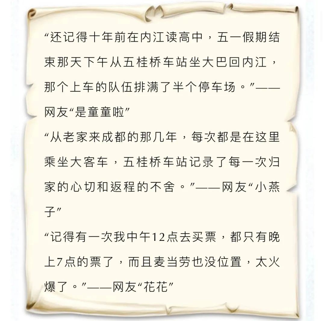 回望过去五桂桥客运站的28年,它承载的不仅仅只是回家时的喜悦和离别时的忧伤,它更像成都的许多老建筑一样存放着许多成都人的难忘记忆!