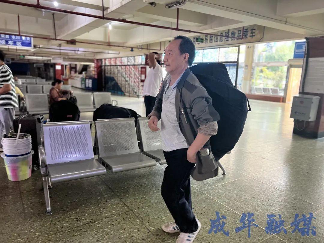 在负一楼的候车大厅,华仔遇到了正要和工友返程回家的钟师傅。“我们是建筑工人,手上的活路刚忙完,准备回家休息一段时间。”得知车站即将关停后,钟师傅的言语中透露出一丝伤感,“每年回银山或返回成都都是从这个车站开始的,虽然以后去东站还是方便,但是你要说对这个车站没有感情那是不可能的。”