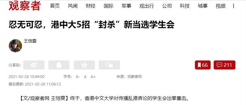 忍无可忍,港中大5招“封杀”新当选学生会 观察者网