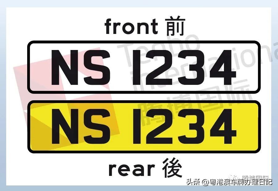 香港单牌私家车一般为“前白后黄”形式,前牌为白底黑字样式,后牌则悬挂黄底黑字样式。