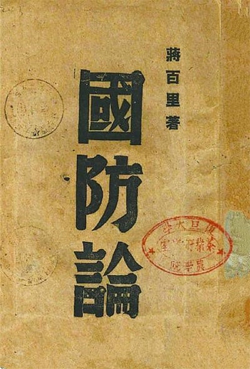1937年初,我国著名军事学家蒋百里的军事论集《国防论》出版,在书的扉页赫然写着:
