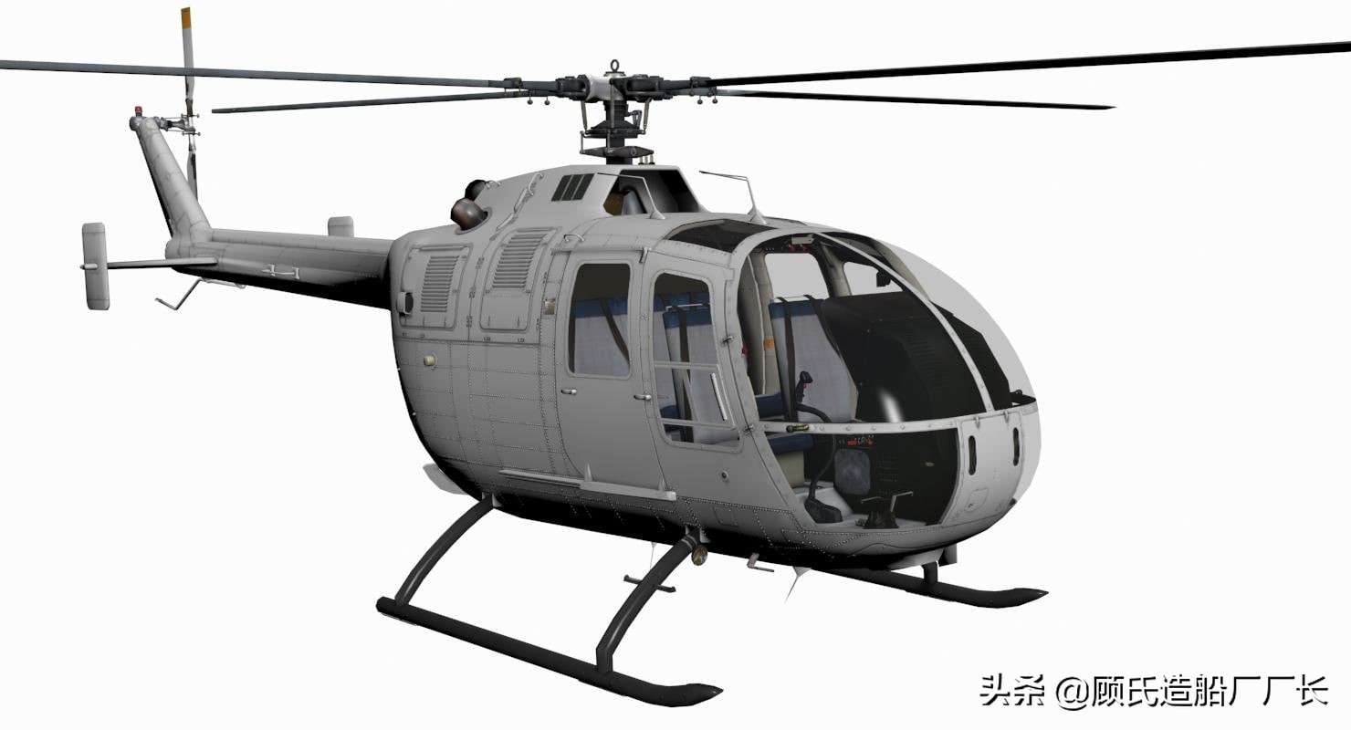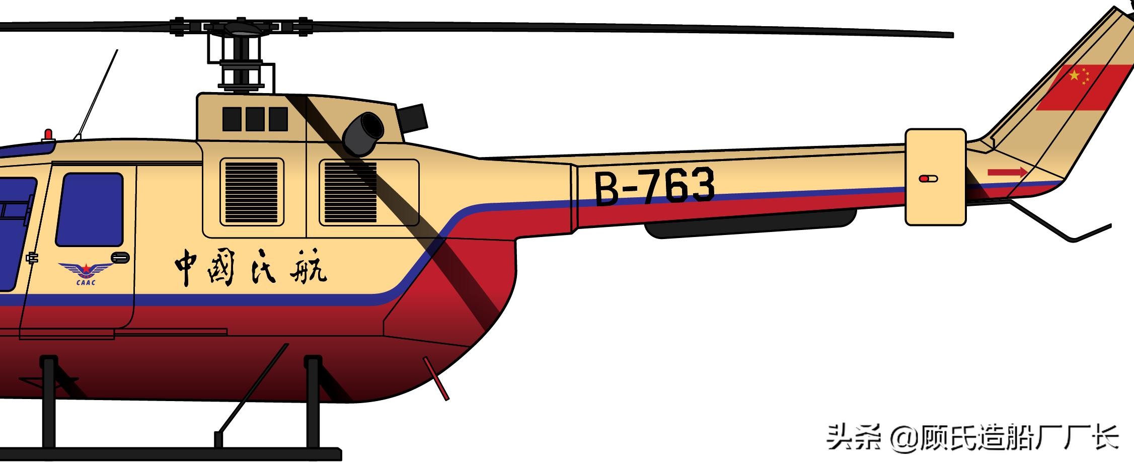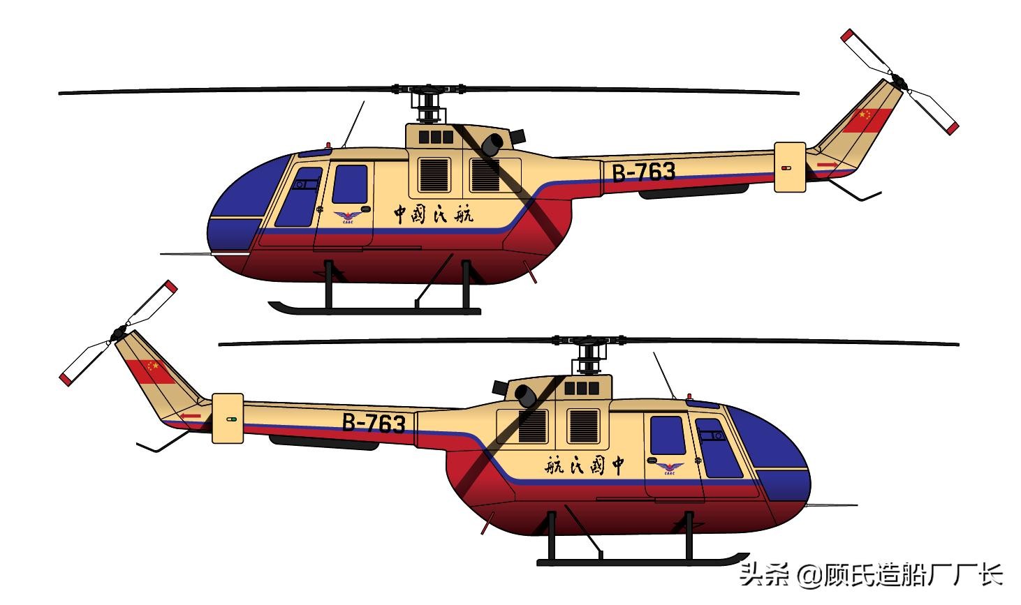 本厂长绘制的B-763号BO-105直升机双面侧视图