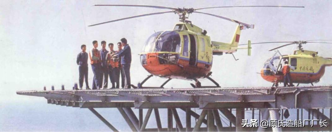 降落在石油平台上的2架中国民航涂装的BO-105直升机