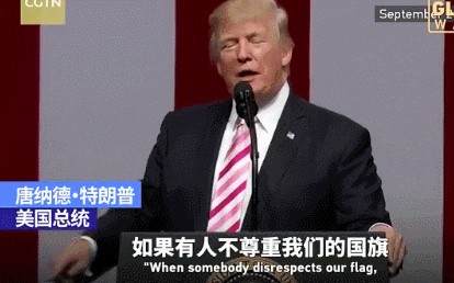 事后,时任美国总统的特朗普在谈及此事时情绪异常激动,并强烈表示球队老板应该把这名非法抗议、不尊重美国国歌的队员给开除。