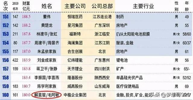 2019年毛阿敏夫妇就以180亿元登上胡润富豪榜榜单。
