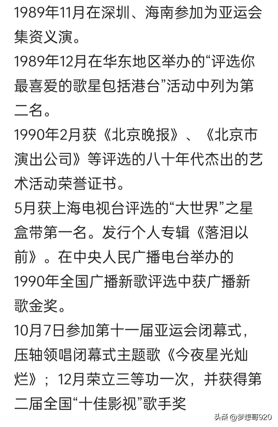 2008年5月18日参加CCTV宣传文化部门抗震救灾募捐活动并为四川地震灾区捐款100万元。9月27日荣获BTV评选的“改革开放三十年来我们最熟悉的十张面孔奖”。12月9日在《唱响30年》原创音乐盛典上荣获30年杰出歌手奖和30年难忘金曲奖。