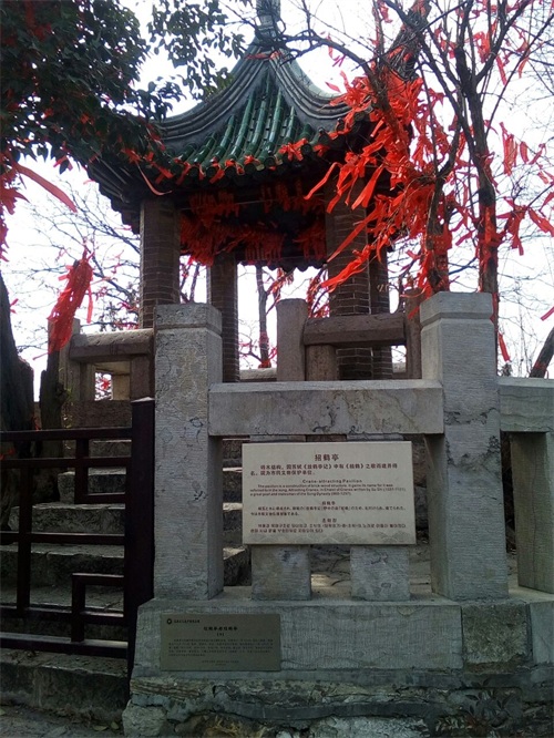 怀古亭。原名“醉亭”,为方便古代文人隐士饮酒休息而建。1952年毛泽东主席在此亭合影留念,并作出“绿化荒山,变穷山为富山”的重要指示,此后更名为“怀古亭”。