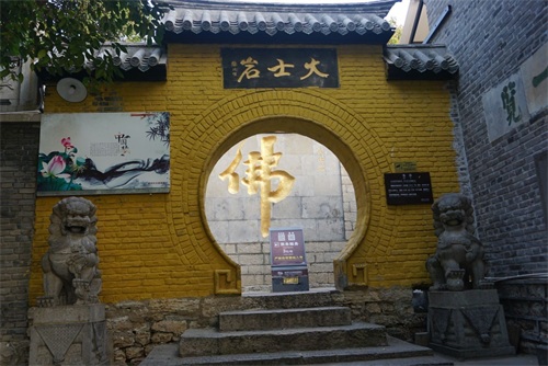大士岩。原为徐州知州姜焯创建的放鹤亭僧舍。挖地基时发现一巨石长约八丈,雕为观音大士像,原石当中有白纹一道,横亘腰间,随示名玉带观音,统名为大士殿。大士岩院内有清代种植的古柏两株,已有几百年的历史。