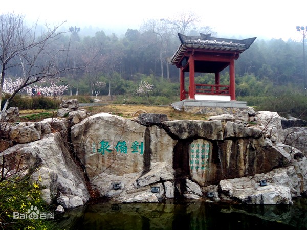 “刘备泉”,在云龙湖东岸山坡上的杏树林中,民间又称为“牛屄泉”,因其外形酷像母牛生殖器而得名。旁边建有小亭和茶苑,十分幽静。