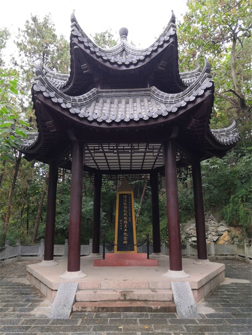 抗战亭。津浦铁路抗战殉难员工纪念碑亭,坐落于云龙山北麓,碑亭主要记载1937年末,日寇侵华逼近徐州,徐州机务段的铁路员工共有186人为国捐躯,特建碑亭以致垂念。