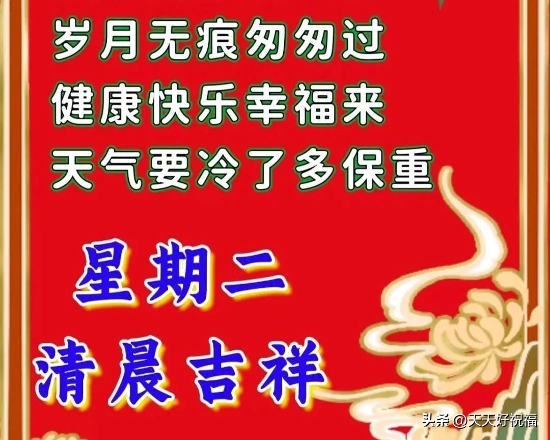 2、寒冷的冬日早晨,愿我的祝福,如一缕温暖的阳光,照亮你的心房。愿你在这个冬天,快乐无比,顺心如意,拥有满满的幸福和好运。周二,早安!!