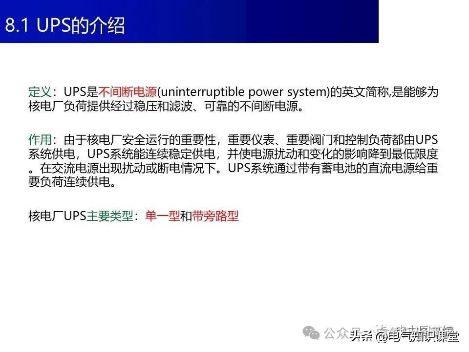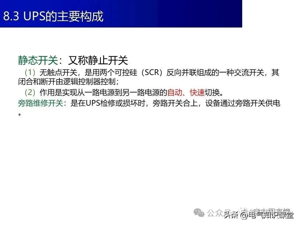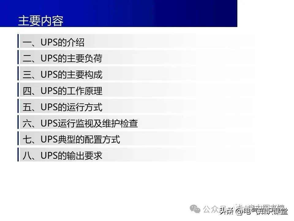 UPS有哪些种类主要分为在线式、后备式和在线互动式三种。在线式UPS就像是一个全职保镖,时刻准备着为设备提供稳定的电力;后备式UPS则像是一个兼职保镖,只在市电停电时才出手;而在线互动式UPS则介于两者之间,既能在市电正常时提供稳定电力,又能在市电停电时提供一段时间的电池供电。此外,对于一些需要24小时不间断运行的设备,如监控摄像头、医疗设备等,UPS电源更是必不可少的。今天小编就给大分享ups电源的基础知识,请大家看以下ppt介绍: