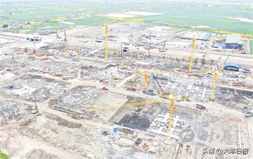 4月7日,记者在盐通高铁大丰站综合枢纽项目建设现场看到, 300多名工人在各自岗位上有序忙碌着,支架搭设、钢筋绑扎、土方开挖、垫层、底板等各工序同时推进。进入3月以来,中铁四局大丰站综合枢纽项目部多措并举,全力做好防疫、复工“两盘棋”,掀起春季大干热潮。截至目前,项目施工已完成所有的工法桩基,进入主体结构施工阶段。据悉,该项目计划将在6月底完成地下停车场、酒店综合楼、换乘中心等主体结构的建设任务。