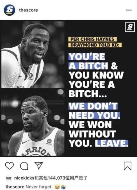 据相关媒体爆料,在加时赛的休息时间中,杜兰特不满格林这场比赛的表现,随后两人就产生了冲突矛盾。追梦格林对杜兰特说“你是在跟谁说话呢”等这样的话,并且还提醒杜兰特:在你来之前我们就赢了。