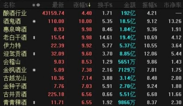 另外,贵州茅台涨1.76%,股价1729.44元,最新市值21725亿元,A股白酒公司整体市值也达到4.35万亿。