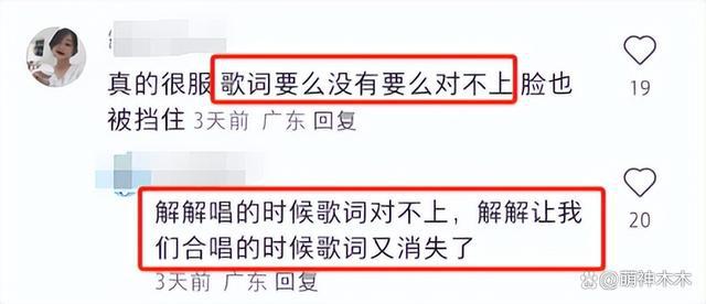 关于歌词呈现,粉丝也称时有时无,邓紫棋唱的时候歌词对不上,粉丝合唱互动的时候歌词又消失了,也间接说明舞舞美不及格,犯下了这种低级错误。