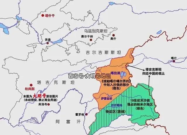 1894年中俄达成停战协议时,中国政府声明:“并不意味着放弃中国对于目前由于中国军队所占领以外的帕米尔领土原有的权利……直到达成一个满意的谅解而止。”现在地图上这段边界是未定界线,是历史遗留的一个悬案。