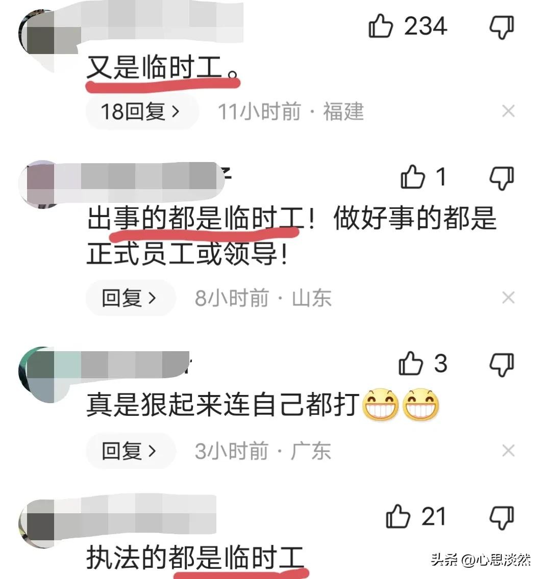 还有人说,又是协管临时工被开除,要是领导或正式工,可能就是简单的免职调职了。