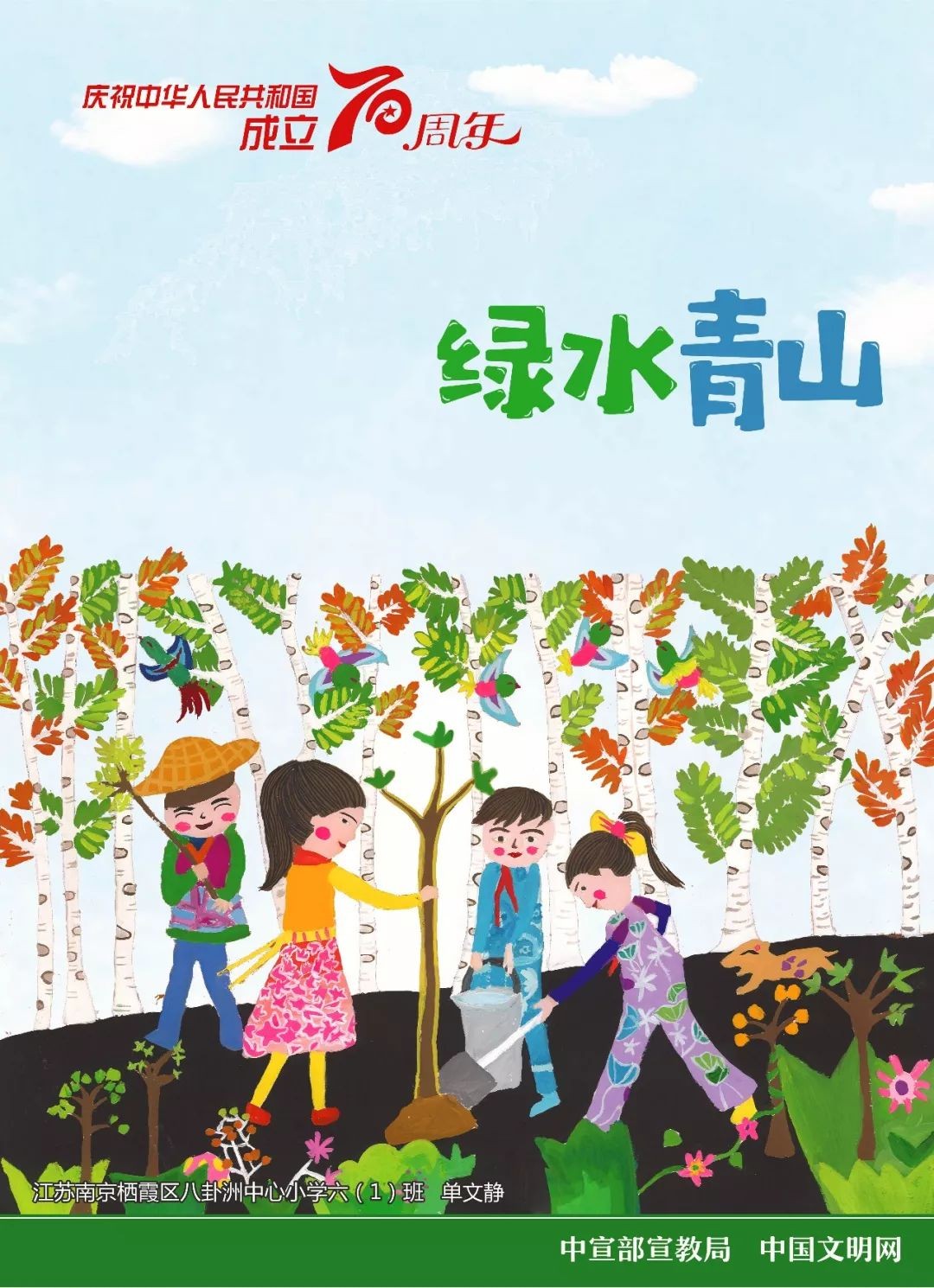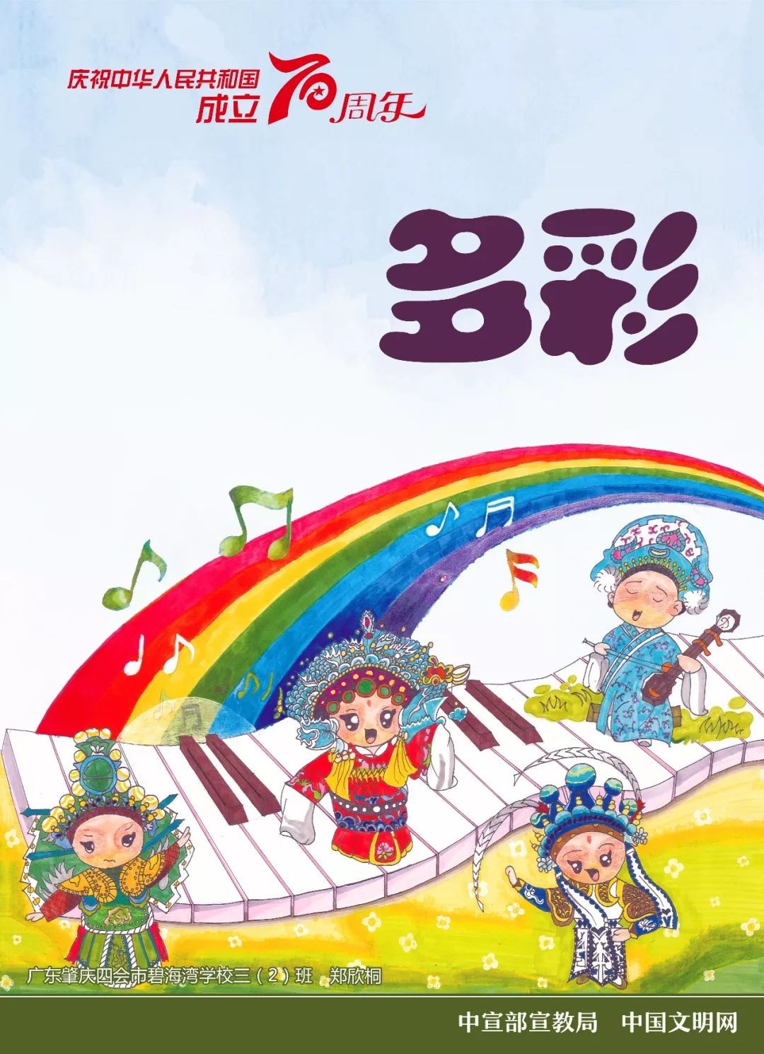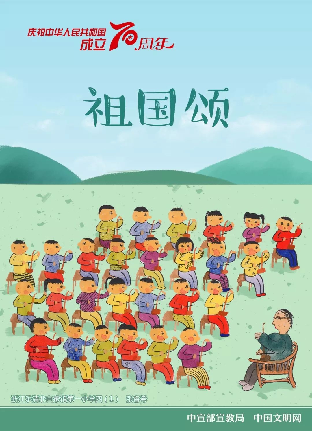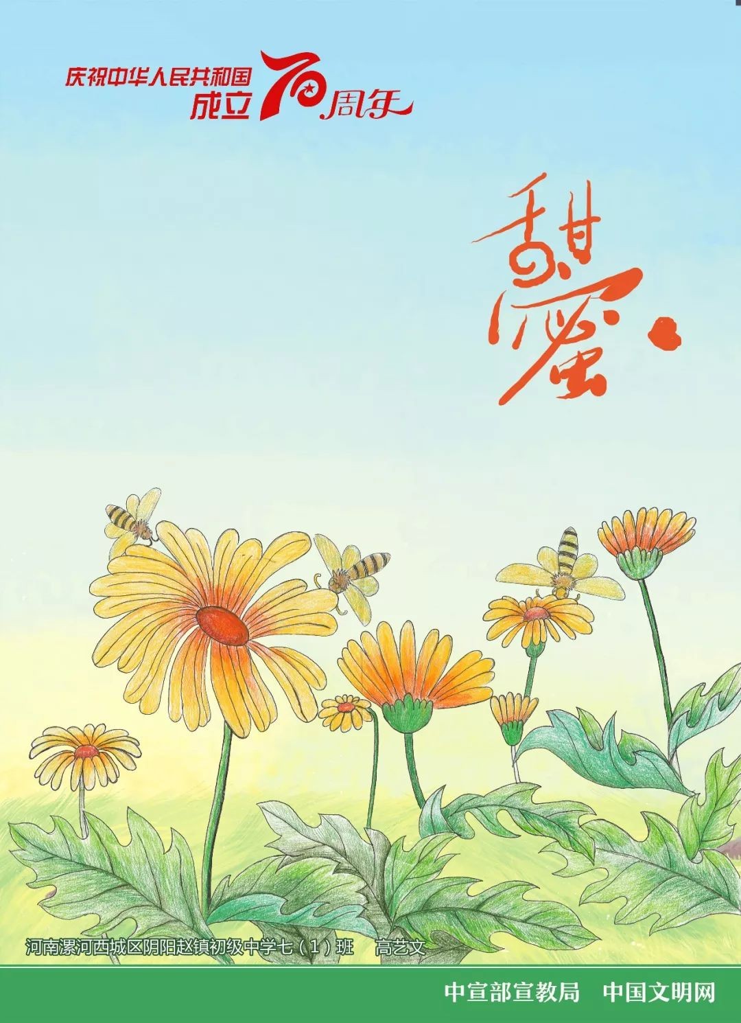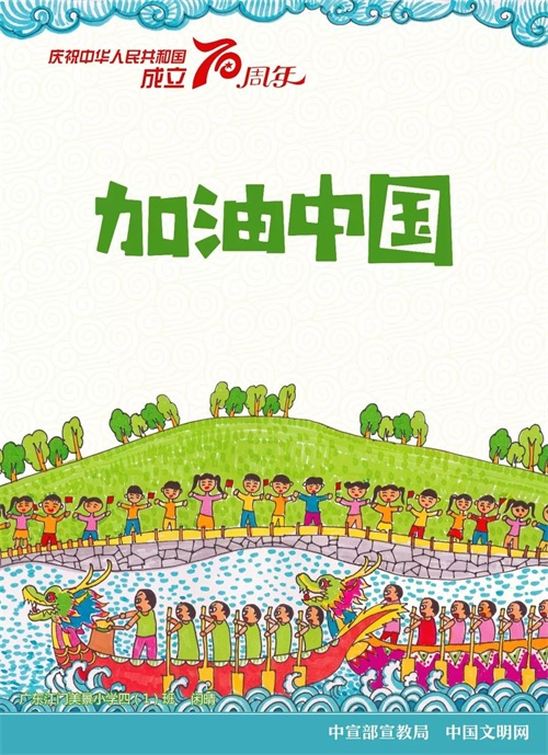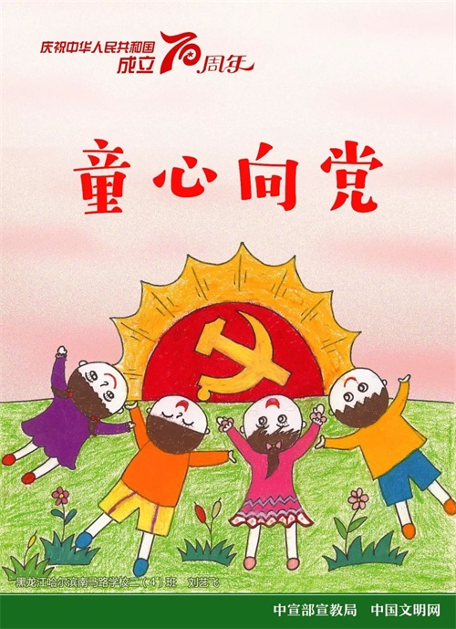 中宣部宣教局、中国文明网联合发布以庆祝中华人民共和国成立70周年为主题的9幅儿童画公益广告。